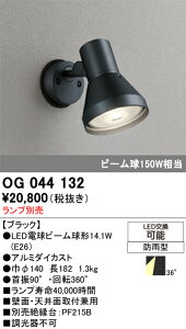 OG044132OG044132ビーム球形LED・ビーム球別売屋外灯 スポットライト LED 自動点灯無し電気工事必要 畳数設定無し白熱灯首振角度:90度 回転角度:360度 径φ140 長182 吊高125製品重量:1.3Kg●アル...