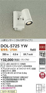 ≫DOL5725YWDOL-5725YW屋外灯 スポットライト LED 人感センサー ON/OFFタイプ電気工事必要 畳数設定無しコメント 人感センサーON/OFFタイプI適合ランプ LED 4W(E11) 中角形 電球色/2700K...