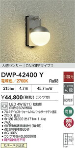 ≫DWP42394YDWP-42394Y屋外灯 勝手口灯 LED 人感センサー ON/OFFタイプ電気工事必要 畳数設定無しコメント 人感センサーON/OFFタイプI適合ランプ LEDユニットフラット形(径75mm) 4.3W(GX5...