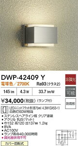 ご注文ください。≫DWP42429YDWP-42429Y屋外灯 ガーデンライト LED取付設定無し 畳数設定無し適合ランプ LED電球 4.2W(E17) 電球色/2700K素材・色・仕上げ ステンレス・アルミ...
