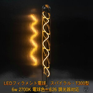 商品詳細 種類 LEDフィラメント T300型電球 消費電力 6W 色温度 電球色2700K 口金 E26 入力電圧 AC100 50/60Hz サイズ Φ30x300mm 重量 60g 演色性 Ra80以上...