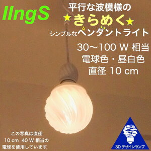 LED の光を美しく拡散する 3Dデザイン電球つきの小型・超軽量,コード長調整可能な 1 灯ペンダントライトです.付属する直径 10 cm の電球 IIng (アイイング) は すこし斜めの横波模様で...