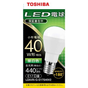 東芝 LDA4N-G-E17S40V2P LED小型電球 E17 40W形相当 昼白色2P 配光角180°●口金:E17●明るさ(一般電球):40W形相当●光の広がり方:広配光 ※180度●調光器対応:非対応...