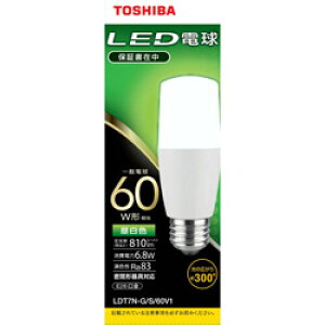 LED電球(T形)60W相当 昼白色(5000K) 口金E26 810lm 全方向(配光角300°) 平均演色評価数Ra83本体サイズ(高さ×幅×奥行)高さ108×幅40×奥行40mm本体重量51g定格消費電力6.8W全光束810lm...