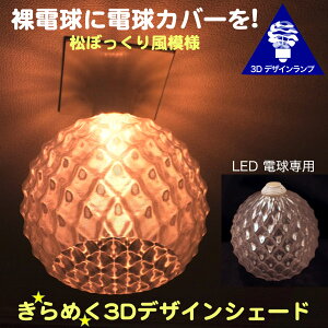 廊下やトイレなどの裸電球を透明な電球カバー「3Dデザインシェード」でかざってみませんか? この松ぼっくり風の模様つきの電球カバーは,普通の LED 電球にかんたんに取り付けられて,まぶしさがおさえられ...