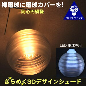 廊下やトイレなどの裸電球を透明な電球カバー「3Dデザインシェード」でかざってみませんか? この凹凸のない同心円模様つきの電球カバーは,普通の LED 電球にかんたんに取り付けられて,まぶしさがおさえられ...
