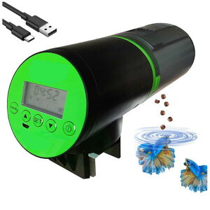 自動餌やり機:この魚自動給餌器はデジタルシステム制御、時間設定機能、液晶モニター表示、配線不要。注:充電式電池は使用しないで下さい。給餌量は一日中に4段階を設定でき、各段階には1-3回の餌を投入できます...