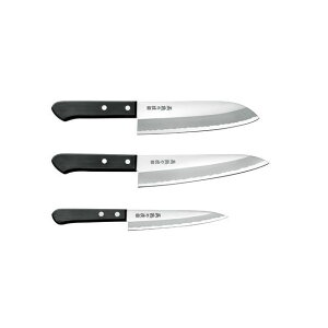 お手入れのしやすいステンレス刃物鋼。・肉、魚、野菜などオールマイティに使える三徳包丁。・果物の皮むきや飾り切りなどに便利なペティナイフ。・刀身はさびにくく、お手入れのしやすいステンレス刃物鋼を採用。・素材