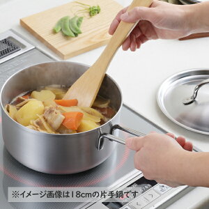 多用途に使えるサイズの日本製のゆきひら鍋です! 目盛付きでラーメンや2〜3人分のみそ汁作りにぴったりな18cm。 両口付きで注ぎやすい。 ステンレス製で内面ピカピカのミラー仕上げでお手入れラク