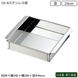 ・日本製・燕三条製の18-8ステンレス製の業務用玉子豆腐器(東)です。 ・中受け部が付いていて、形を崩さずお料理をきれいに取り出す事ができます。 ・玉子豆腐器の他にもケーキ焼き型や羊羹作り・寒天作りにも最適です。 ・耐腐食性に
