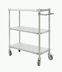 ステンレス製キッチンワゴン。キャスターが付いているためお好きな場所まで移動し、調理スペースとして使えます。中棚は5cmの高さ調整可能。天板の四隅には保護キャップ付き。【サイズ】本体:約幅50×奥行39×高さ85cm。