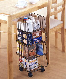 燕三条で生産した新ブランド「LUGSJAPAN」 洗練されたデザインで使い勝手の良い移動式キャスター付き。 棚板に耐久性、耐熱性に優れたガルバリウム鋼板使用。 横幅を自在に調節可能。 小物を掛けられるS字フック2個付き サイズ・容量 約