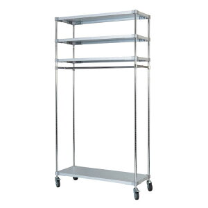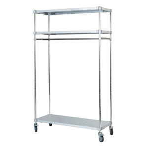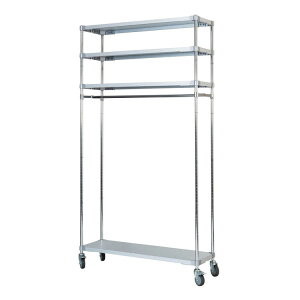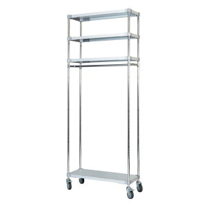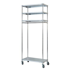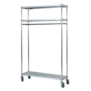 アルミニウムと亜鉛の強みを兼ね合わせ、耐熱・耐食・長期耐久性に優れたガルバリウム鋼板製棚板、ハンガーパイプはお好みの位置に調整が可能棚板部分はフラットに折り曲げられている為、汚れなどが溜まりにくく、物の出し入れがしや