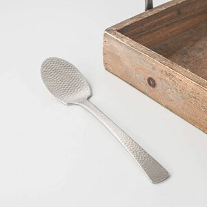 和食器との調和を基本にデザインされた商品です。 日本的な槌目模様で和菓子をのせた器やコーヒーカップにお使い下さい。 槌目模様のみつ豆等に最適な小さいスプーンです。 ●サイズ:113mm サイズは必ず実測にてご
