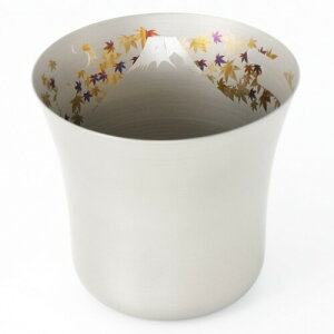 AR-PLOMB(アプロム) 燕三条 純チタン製ユーティリティカップ 祥(Show) 日本製 薄口 へら絞り レーザー加工 冷たい飲み物専用 タンブラー ペア ビアカップ ハイボール (秋(紅葉×富士山))...