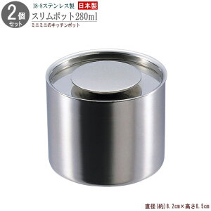 コンパクトなスリムサイズ 2個組 ●オールステンレス製のシンプルなキッチンポットです。 ●ステンレス板の厚みもあり、丈夫な作り。 ●少量の薬味や調味料入れにちょうどよいミニサイズ。 [商品仕様] ●商品サイズ(約)/直径82×高さ65mm