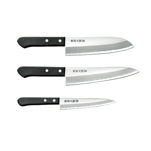熟練の技巧 信頼の日本製。古くから金属加工が盛んな新潟県燕市のブランド。 ■材質 三徳包丁・牛刀包丁・ペティナイフ:刀身/ステンレス刃物鋼 ハンドル/PBT樹脂 キッチンバサミ:刀身/ステンレス刃物鋼...