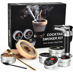 ■商品説明■ ●サイズ: バーボンスモーカーキットの木製ベースのサイズは3.54インチです。このサイズより小さいワイングラスを使用することにご注意ください。 ■このカクテルスモーカーセットには、スモークインフューザー、トーチ、