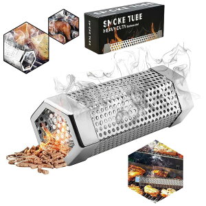 "【商品規格】:2個セット。1個あたりの寸法:約20.5×5×5cm1重量:約129g 素材:ステンレス。形状: 六角形。従来の円形の喫煙チューブとは異なり、特別な喫煙者チューブは安定して維持でき、グリル火格子で転がりません。一方の端...
