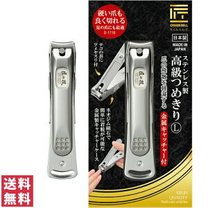 硬い爪も良く切れる! ・爪の飛散を軽減する金属キャッチャー付き。 ・磁石式のキャッチャーケースは簡単に着脱可能なのでゴミ捨てもラクラク! ・足の爪にも最適なLサイズです。 商品名 ステンレス製高級つめきりL 金属キャッチャー付