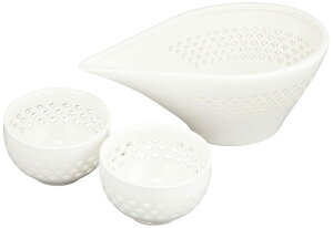 光を透す「透かし彫り」が美しい「蛍手」の酒器セット。[サイズ](片口)約径15×8.2×高さ6.2cm、(ぐいのみ)約径6.2×高さ3.9cm(1個当たり)[容量](片口容量)約200ml[セット内容]片口×1個、ぐいのみ×2個