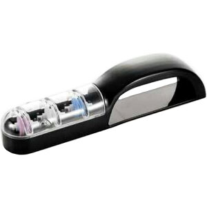【商品情報】●荒研ぎ・中研ぎ・仕上研ぎが、できます。●水研ぎを可能にしました。●研ぎ部に水を入れ、庖丁を研ぎ溝に垂直に差し込み、前後に7〜8回動かすだけの手軽さです。●手にピッタリフィットするハンドル部分は、研いでいる