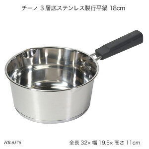 チーノ3層底ステンレス製行平鍋 18cmです。焦げつきにくく、保温力抜群の3層構造。オール熱源対応。IH対応。ガス火対応。
