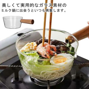 【400ml/600ml】【木製ハンドル】中身が一目で確認できるガラス製片手鍋。1〜2人分の調理や離乳食作りにちょうど良いサイズのミルクパンです。必要な分だけ少量で調理できるので、火力も節約できエコ調理...