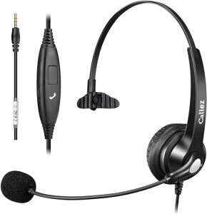 ■商品説明■ ヘッドセット PC用 3.5mm接続 有線 片耳 ノイズキャンセリング マイク付き 携帯電話用ヘッドホン マイク左右兼用 着信応答/終話 音量調節 iPhone Android iPad...