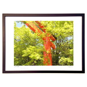 【作家からの作品説明】青紅葉、映えて桜の終わりを迎える頃に京都で出会った、朱色の鳥居に青紅葉。この時期だからこそ出会えるコントラストに、思わずシャッターを押してしまいました。朱色の鳥居に青紅葉が鮮やかに映え、僅かに見