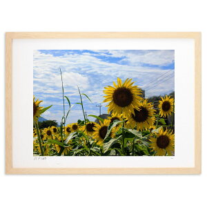 【作家からの作品説明】ひまわり畑にてひまわり畑です。空に向かって、太陽に向かって一斉に咲き、風が吹くと一斉に大きな花を揺らす姿に圧倒されます。大きな目に一斉に見られているような、少し緊張感を覚える不思議な気持ちになり