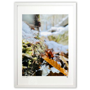【作家からの作品説明】しずくの語らい森の奥深く、小さな命の営みが息づく場所。冬の冷たい雪が、ゆっくりと溶けていく。その雫は、まるで春の訪れを告げるメッセージのように、葉の先から静かに滴り落ちる。苔むした岩肌には、雪解