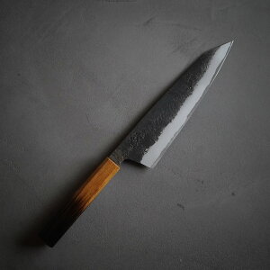 安来青二鋼を鍛造し黒打の槌目で仕上げた高級感ある包丁です。