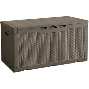 樹脂製なのでお手入れ簡単。 ベランダやお庭の収納に。商品詳細サイズ(約)幅122×奥行56×高さ60cm ■キャスター付材質主材:スチール、張地:ポリエチレンカラーダークブラウン/グレー/ホワイト組み立てについてお客様組み立て送料について■