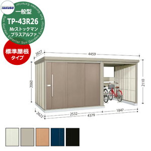 中・大型物置 タクボ Mr.ストックマン プラスアルファ TP-43R26 物置に駐輪スペースをプラスしました。 販売条件 ◆詳しくはこちらをご確認ください カラー ・Mムーンホワイト ・Bカーボンブラウン...