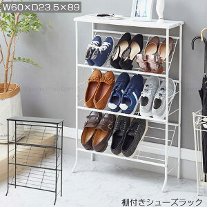 靴を斜めに収納する事で奥行をおさえ、スリムに収納できる棚付きシューズラック。 玄関の限られたスペースを有効活用できるスリムなシューズラック。 天板部分に小物が置けるので、小物を飾ったり、カギなどお出かけの際に必要なもの
