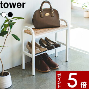 シューズラック タワー tower おしゃれ ベンチ 玄関ベンチ スリム 玄関 荷物置き 省 スペース 山崎実業 北欧 シューズ ラック 靴 置き 2段 手荷物 スツール ブランド名立ちやすい ベンチ シューズラック タワーBENCH...
