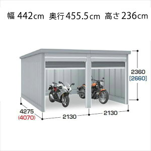 商品番号23192601メーカーイナバ物置サイズ幅 4420.0mm × 奥行き 4555.0mm × 高さ 2660.0mm通常納期14日後以降発送(要問合せ)坪数6.09素材スチール重量(kg)758タイプスチール対応タイプ2台用...