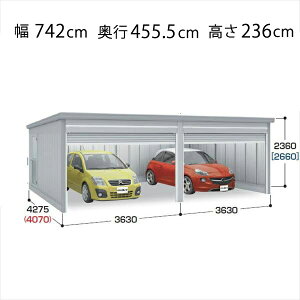 商品番号23192301メーカーイナバ物置サイズ幅 4420.0mm × 奥行き 4555.0mm × 高さ 2360.0mm通常納期14日後以降発送(要問合せ)坪数6.09素材スチール重量(kg)733タイプスチール対応タイプ2台用...