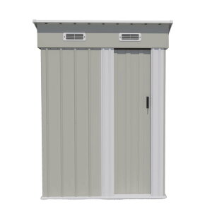 スチール 倉庫 床材補強フレーム付き 戸外収納庫 幅148*奥行き82.5*高193 物置き おしゃれ 大型 収納庫 屋外物置 防さび ベランダ 防水 ドア スチール物置 屋外収納 ガーデニング 庭 【グレーホワイト】Product...