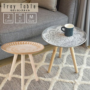 天板のモロッコ風模様やレリーフが繊細で美しいトレーテーブル。 天板に立体的に施された模様が美しいトレーテーブルです。 高さ37cm・直径40cmでソファのサイドテーブルなどにちょうど良いサイズ感。お気に入りの小物をディスプレイした
