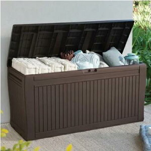【特長】・上フタと前扉のダブル開閉なので、荷物の出し入れがしやすいです。・大容量148L分の収納力。灯油缶やガーデン、アウトドア用品をすっきり収納できます。・蓋を閉めると、アルミベンチに早変わり。・サビに強いアルミ製です。