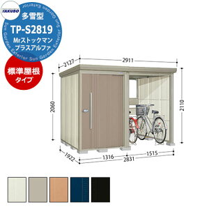 中・大型物置 タクボ Mr.ストックマン プラスアルファ TP-S2819 物置に駐輪スペースをプラスしました。 販売条件 ◆詳しくはこちらをご確認ください カラー ・Mムーンホワイト ・Bカーボンブラウン...