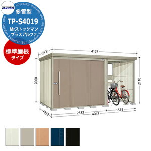 中・大型物置 タクボ Mr.ストックマン プラスアルファ TP-S4019 物置に駐輪スペースをプラスしました。 販売条件 ◆詳しくはこちらをご確認ください カラー ・Mムーンホワイト ・Bカーボンブラウン...