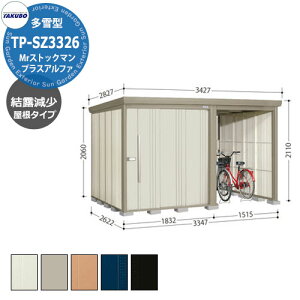 中・大型物置 タクボ Mr.ストックマン プラスアルファ TP-SZ3326 物置に駐輪スペースをプラスしました。 販売条件 ◆詳しくはこちらをご確認ください カラー ・Mムーンホワイト ・Bカーボンブラウン...