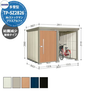 中・大型物置 タクボ Mr.ストックマン プラスアルファ TP-SZ2826 物置に駐輪スペースをプラスしました。 販売条件 ◆詳しくはこちらをご確認ください カラー ・Mムーンホワイト ・Bカーボンブラウン...