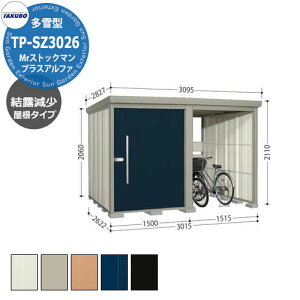 中・大型物置 タクボ Mr.ストックマン プラスアルファ TP-SZ3015 物置に駐輪スペースをプラスしました。 販売条件 ◆詳しくはこちらをご確認ください カラー ・Mムーンホワイト ・Bカーボンブラウン...