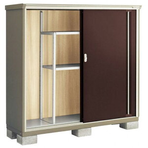 ツートンカラーの物置、コンパクトながら収納力十分で多用途に対応 棚板は2cm刻みで高さ調整可能(20段階) スライド扉で開閉スムーズ 鍵付きで、施錠状況も一目で確認可能 コーナーキャップ付きで安全性アップ レールの隅には水抜き穴付きで...