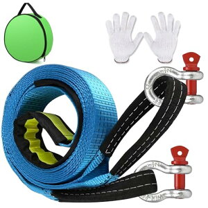 【セット内容 】牽引ロープ(5M*5cm)*1、手袋1ペア、U字ネジシャックル*2、収納バッグ*1 (あらゆる緊急状況に備えて、この車用牽引ロープを常に携帯しましょう。安全と安心をあなたに提供します。...