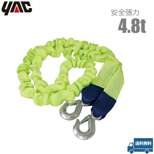 ・故障車のけん引などに。 ・ショックが少ない伸縮性のあるけん引ロープです。 ・安全性を考慮した、ワンタッチで取り付けやすく、はずれにくいフック金具を採用しています。 ・ロープに付ける白旗付きです。 ・安全張力:4.8tまで ・収